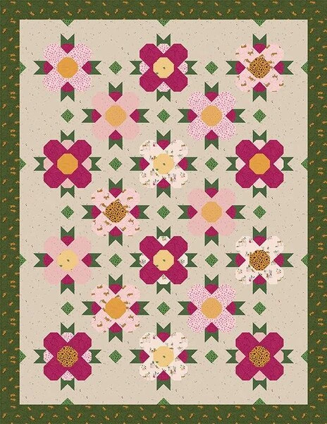 Item Description: The Succulent Quilt by Amanda Niederhauser of Jedi Craft Girl features pieced flowers. Finished size is 68″ x 88″.