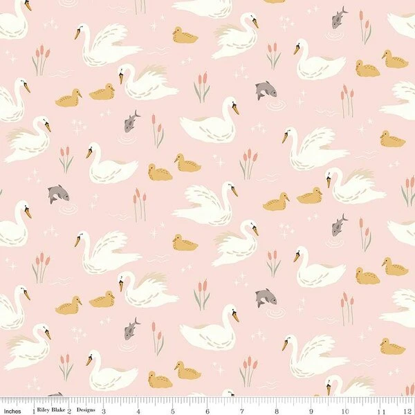 Item Description: This double napped flannel from Little Swan by Sandra Nygård-Parthoens of Little Forest Atelier for Riley Blake Designs is great for apparel, blankets, quilts and quilt backs. This print features swans with fish, asterisks, and ripples of water.