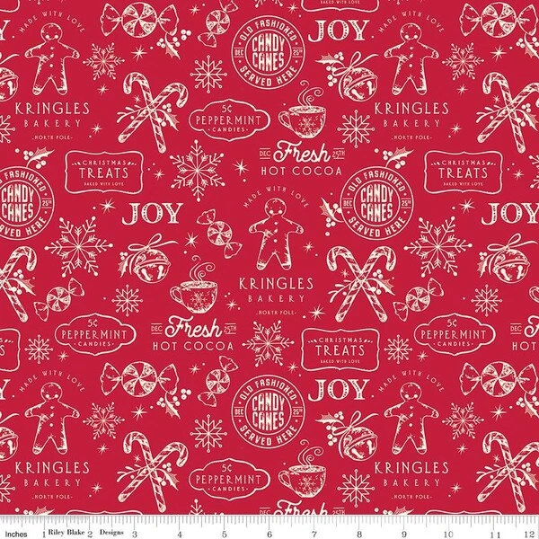 Item Description: This double napped flannel by My Mind’s Eye for Riley Blake Designs is great for apparel, blankets, quilts and quilt backs. This print features vintage treats, text and other winter icons.