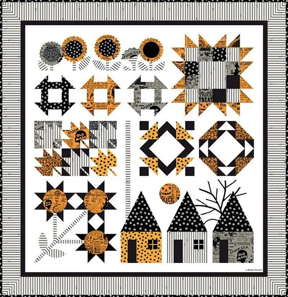Item Description: The Autumn Acres Quilt Pattern by J. Wecker Frisch is a fall-themed sampler quilt. Finished size is 62 1/2″ x 64 1/2″.