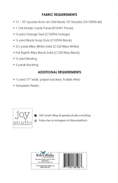Item Description: The Cabin Chills Quilt Pattern by J. Wecker Frisch features pieced houses and uses the Old Made Cards Panel (P10591-PANEL). Finished size is 50 3/4″ x 79 1/2″.