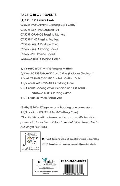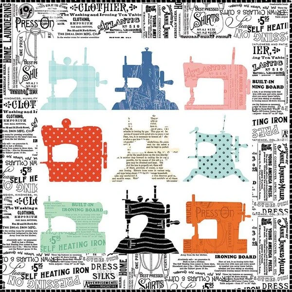 Item Description: The Machines Quilt by J. Wecker Frisch features raw edge applique sewing machines. Finished size is 37″ x 37″.