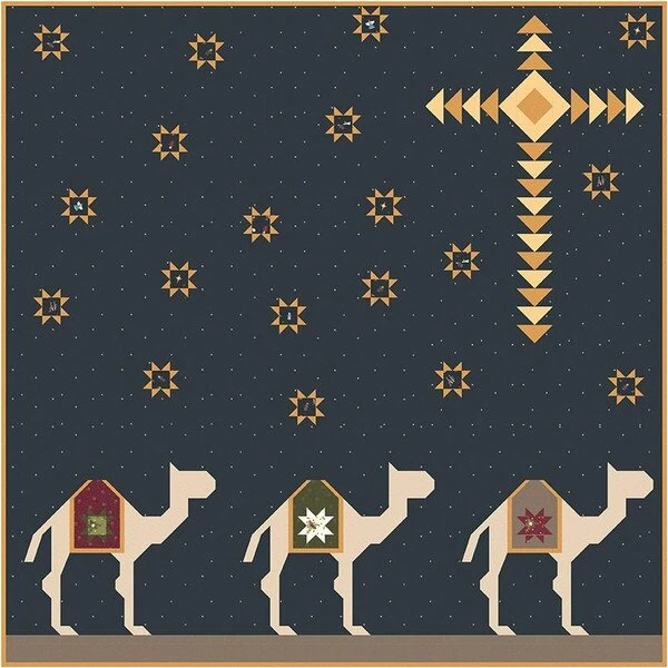 The Follow the Star Quilt by Jennifer Long of Sew A Star features pieced stars and camels. Finished size is 72″ x 72″.