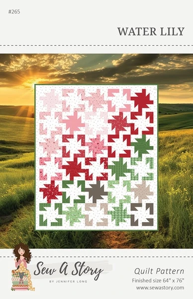 The Water Lily Quilt by Jennifer Long of Sew A Story is a stunning one-block quilt. This quilt pattern is traditionally pieced and is fat quarter friendly. This quilt is a quick sew and beginner friendly using the stitch and flip method for angled piecing. Have fun playing with your favorite prints on this Water Lily Quilt Pattern with visually dramatic results. Finished size is 64″ x 76″.