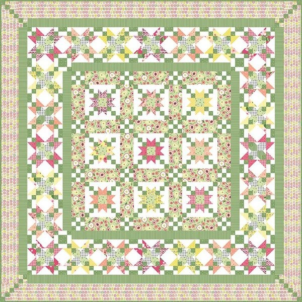 Item Description: The Fruit Stand Quilt and Runner by Jill Finley of Jillily Studio feature pieced star blocks. Finished quilt size is 68″ x 68″. Finished runner size is 14″ x 62″.