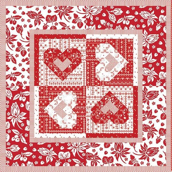 Item Description: The Heart to Heart Quilt by Jill Finley of Jillily Studio features pieced hearts surrounded by alternating borders. Finished size is 36″ x 36″.