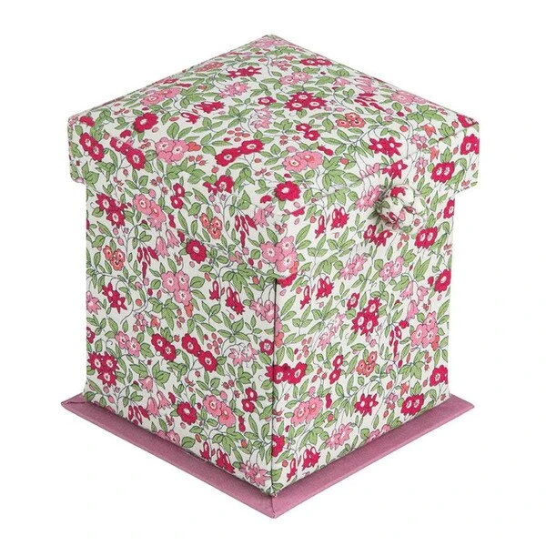 Item Description: The Liberty Fabrics Victorian Style Sewing Box provides fashionable storage for all your essential tools. It contains sewing scissors, tape measure, needle threader, stitch ripper, thimble, buttons, colored threads, needles, pins, and a pin cushion. The sewing box comes in a variety of Liberty Fabrics prints and is the ideal starter kit or gift for sewists, quilters, and makers. Spot clean only. Approximate size is 4 3/4″ x 4 1/2″ x 4 1/2″.