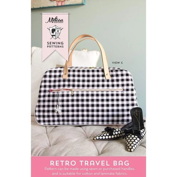 Item Description: The Retro Travel Bag by Melissa Mortenson is a great travel bag that is perfect to stow your stuff in when youโre on the go! Included in the pattern are three different handle styles. Pattern includes full-size pattern pieces, color photos, and deatiled instructions to make creating your bag as easy as possible. The finished bag is approximately 20″ wide x 11″ tall x 6″ wide.