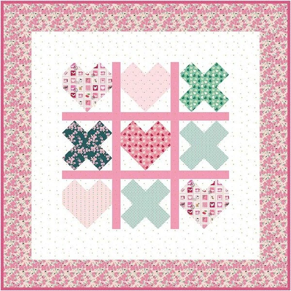 Item Description: The Tic-Tac-Cat Quilt by Melissa Mortenson features a tic-tac-toe board made up of x’s and cat faces. Finished size is 40″ x 40″.