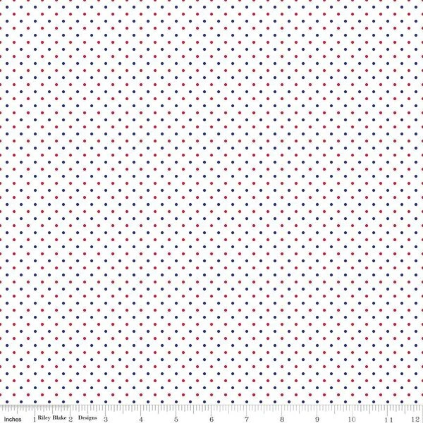Item Description: This Riley Blake Designs Basic fabric features small polka dots on a white background every 1/2″ along the fabric.