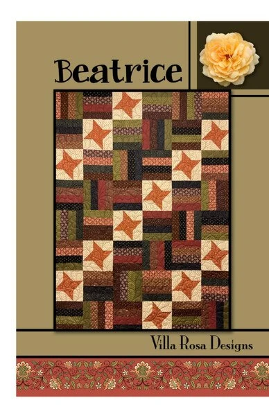 Item Description: The Beatrice Quilt by Villa Rosa Designs features rail and star blocks. Finished size is 54″ x 72″.